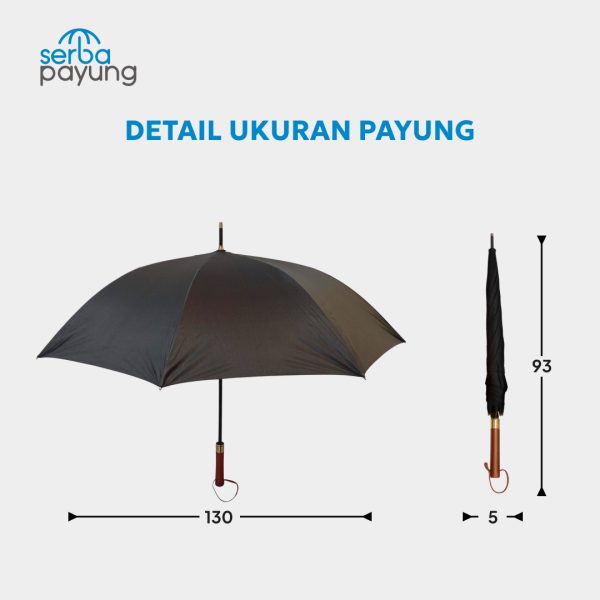 - Dimensi : 6cm diameter saat payung tertutup, 125cm diameter saat payung dibuka, 98cm untuk panjang payung dan gagang payung berbahan kayu